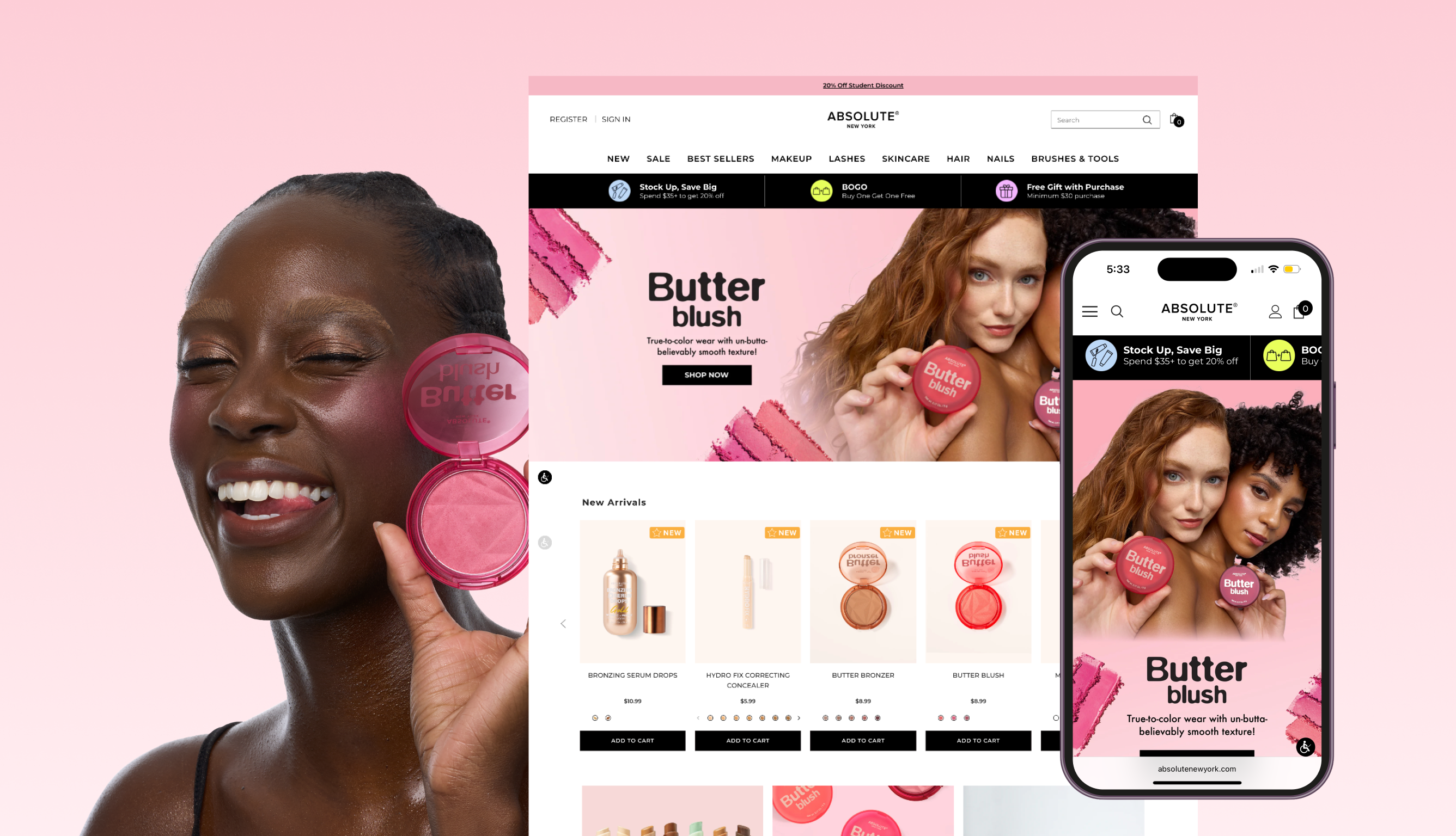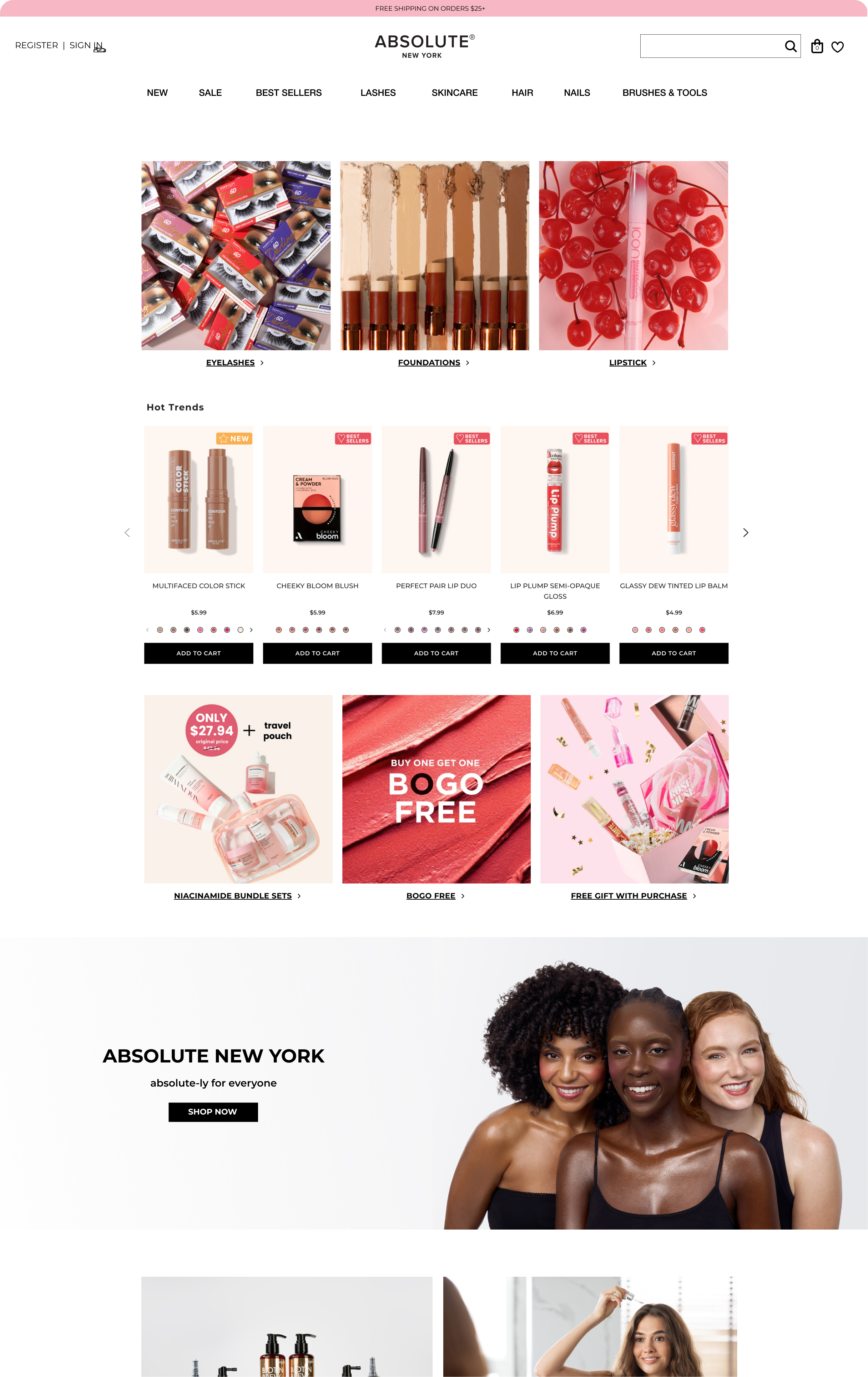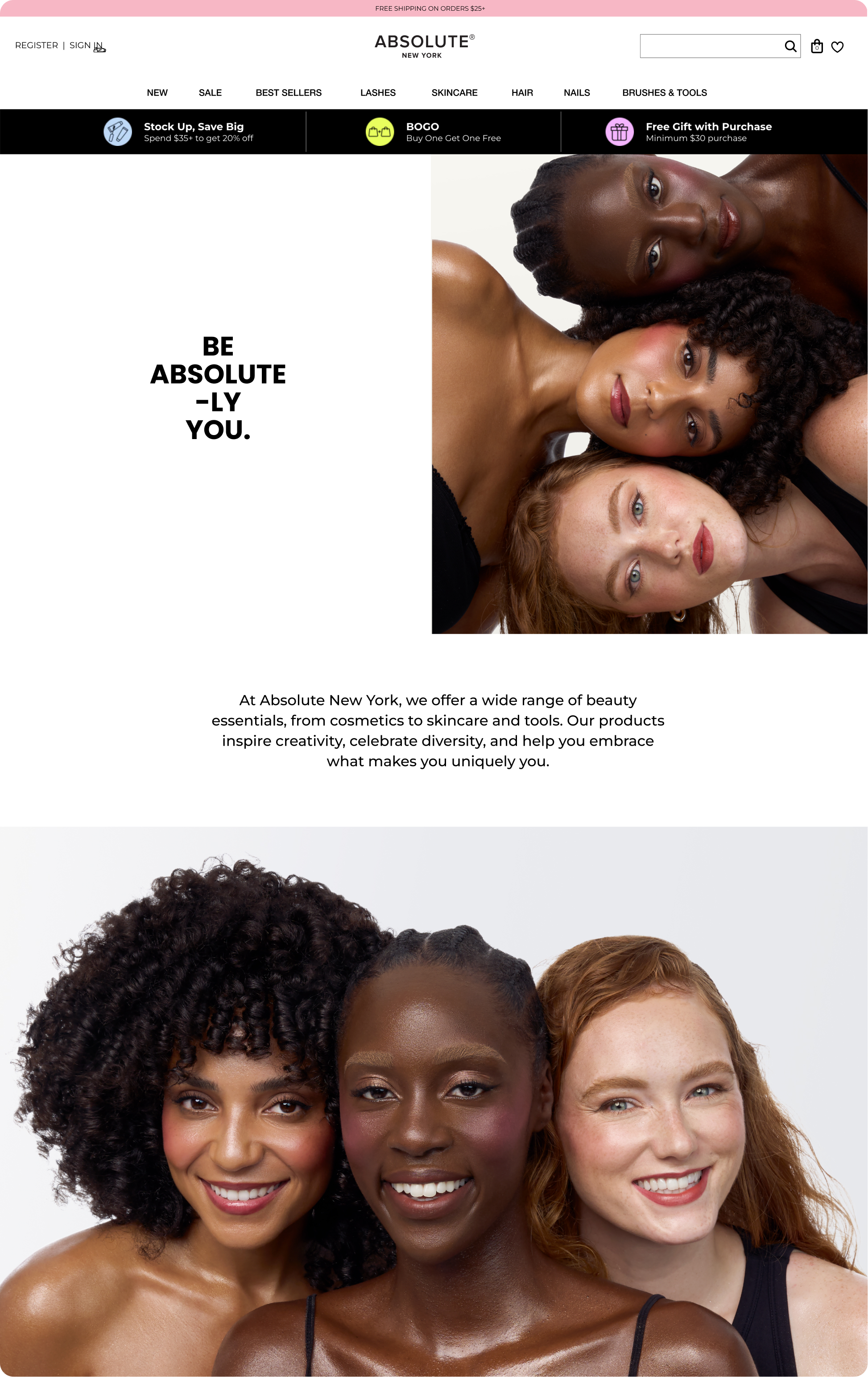 Absolute New York had a strong presence in beauty supply stores but lacked focus on online marketing, leaving their website outdated since 2019. Post-pandemic, they recognized the importance of enhancing their online platform. The outdated design was misaligned with current trends and struggled to attract consumers, prompting a full redesign and update.